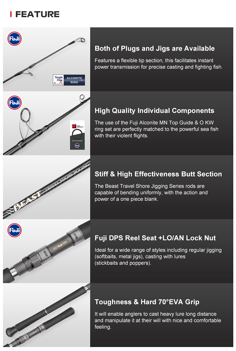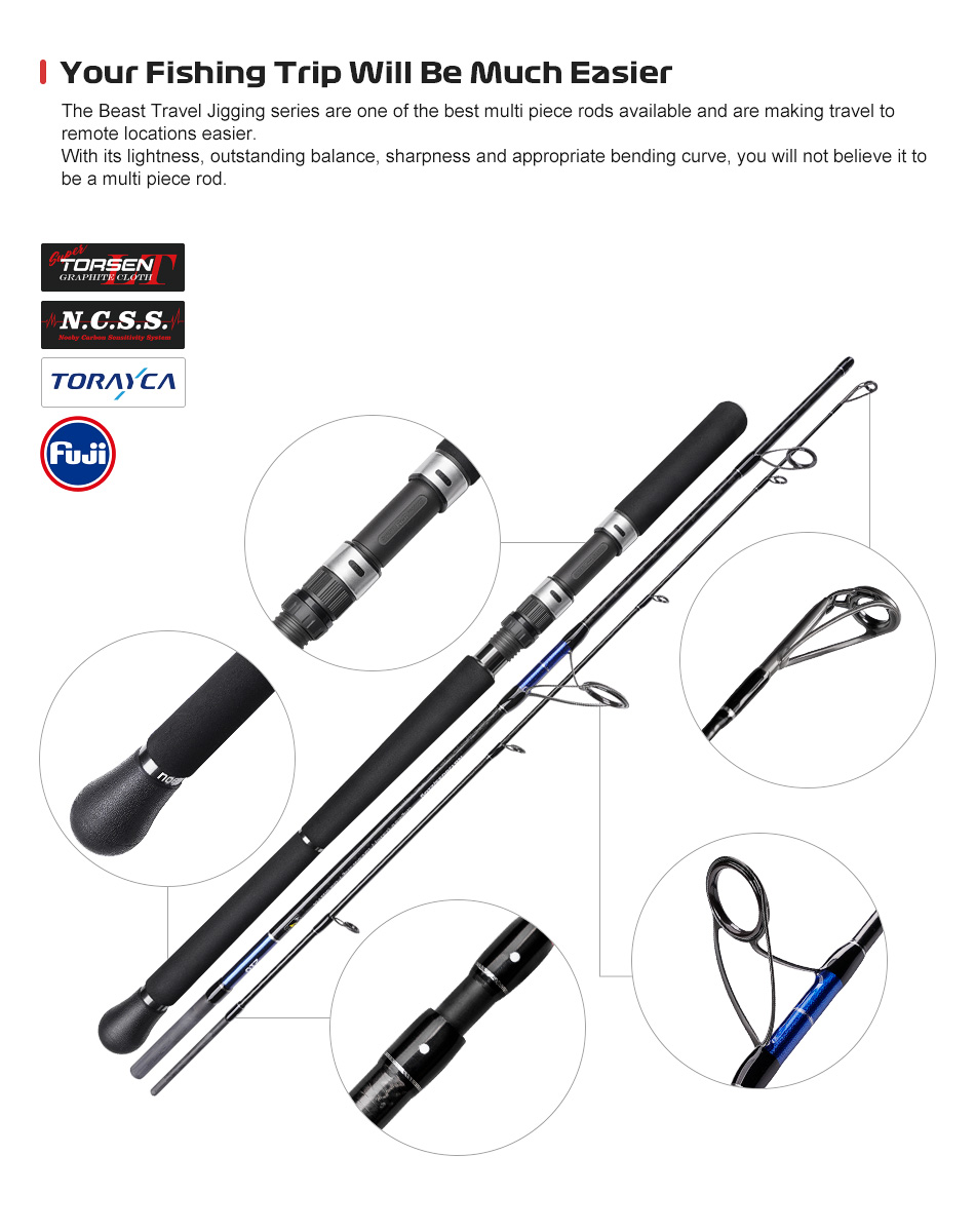 Engineered for anglers who demand top-tier jigging performance in a traveling rod, without sacrificing performance, the BEAST Travel Jigging Rod delivers exceptional strength and action in a compact, multi-piece build. Its three-piece design performs like a one-piece rod, making it the perfect companion whether you’re fishing from a boat, the shore, or on an international adventure
