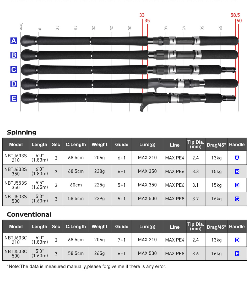 • Length: 5’3” (1.60m) – 6’0” (1.83m)