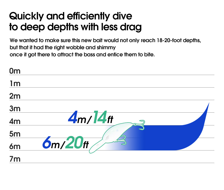 The Depthcharger is engineered to reach strike zones fast—diving significantly deeper than typical small crankbaits. It features a wide snag-resistant coffin-shaped bill that enables controlled, low-drag descent while maintaining precise wobble. Built with fortified internal structure and high-quality components, this lure is ideal for fishing vertical walls, deep reefs, drop-offs, and structure-rich offshore zones.
