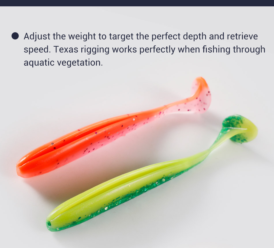 The Easy Shiner is a premium soft plastic swimbait combining a slender shad-style profile with a lively, paddle-tail kick—ideal for finesse casts, drops, or steady retrieve presentations. Its ribbed body also offers excellent hook protection, ensuring durability and snag resistance