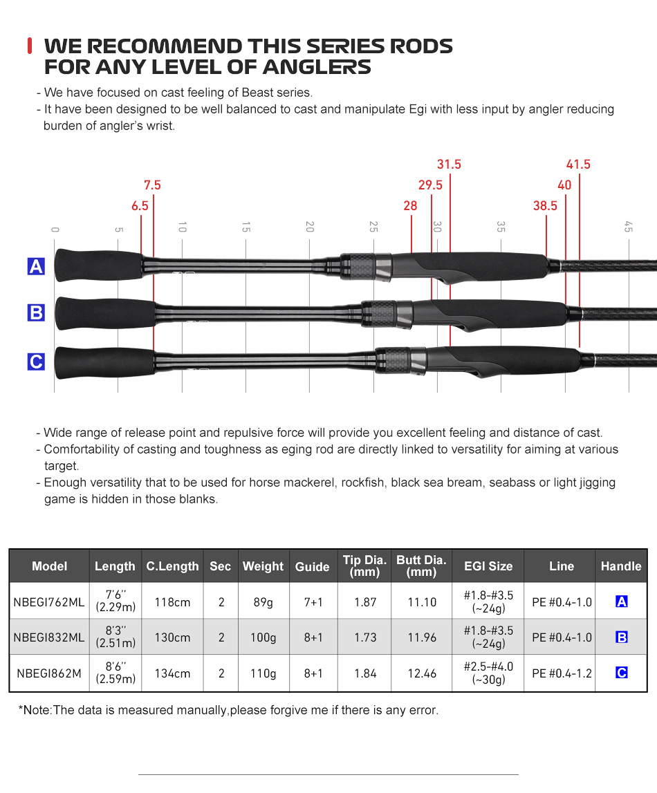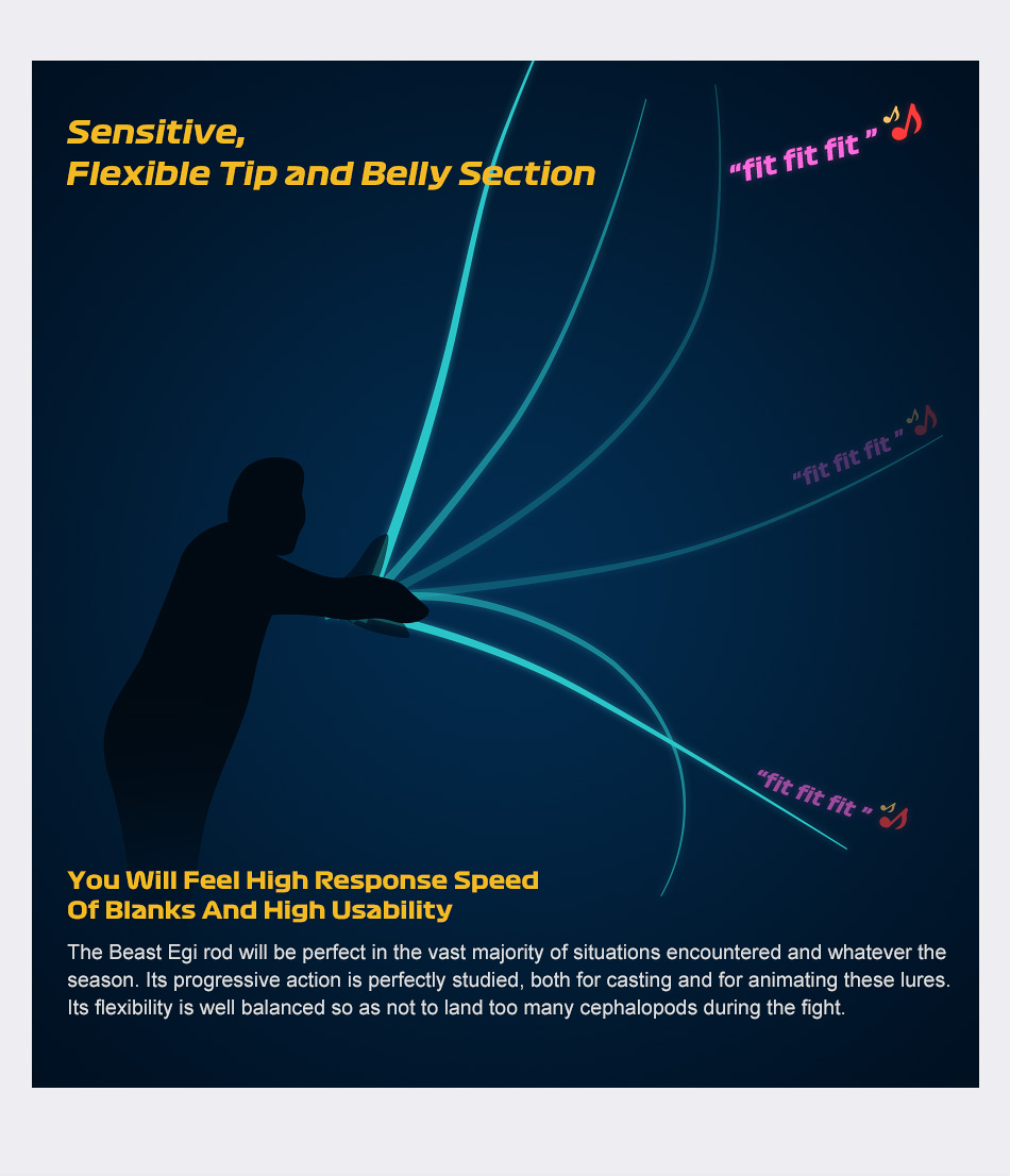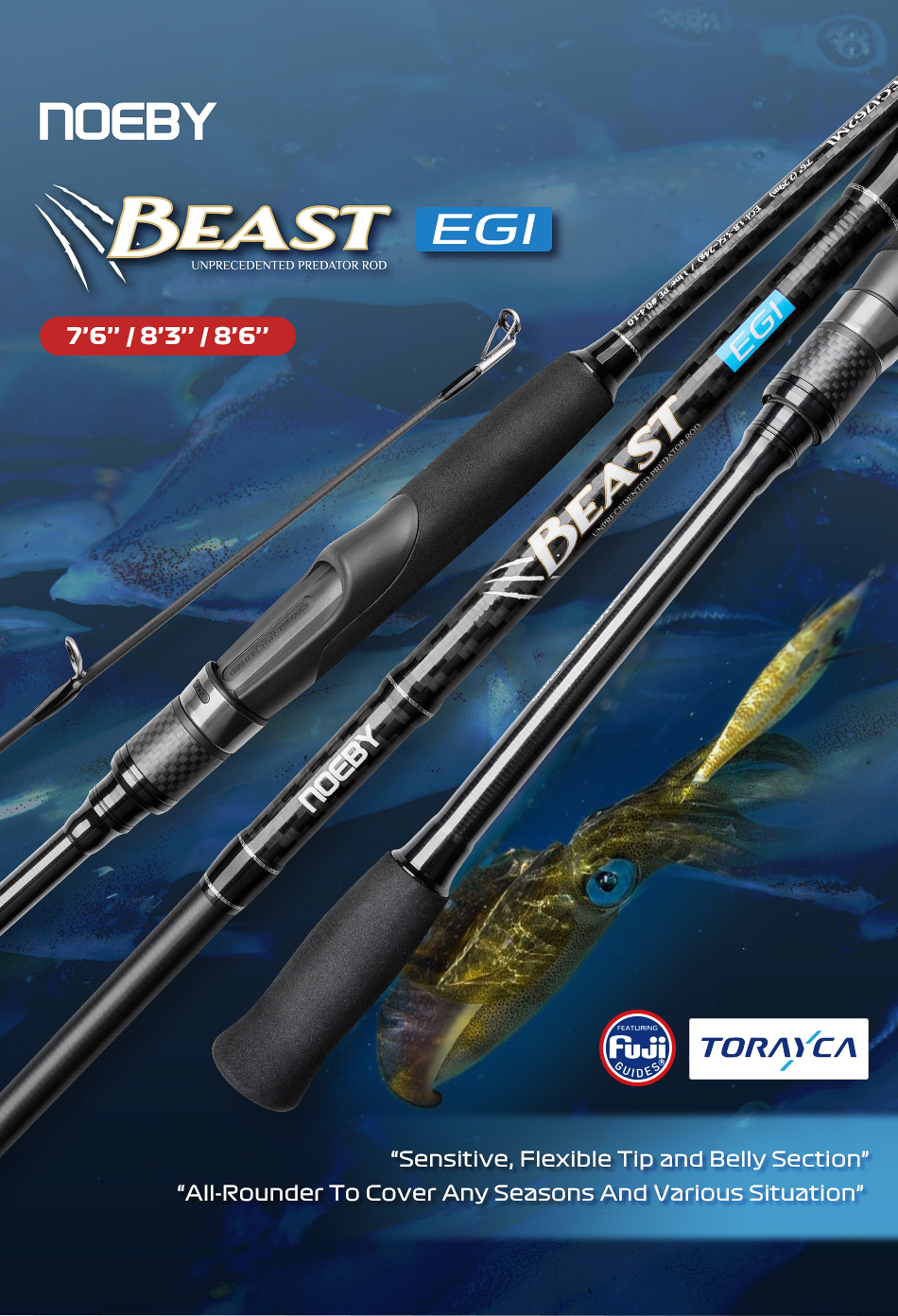 Designed for serious squid and cuttlefish anglers in saltwater environments, the BEAST EGI is sleek, sensitive, and fast—ideal for Egi-style targeting of cephalopods with precision and responsiveness. The BEAST EGI Rod combines ultra-light feel with a stiff backbone—delivering accurate lure control, sensitive feedback, and fatigue-free comfort. High-end FUJI hardware, travel-ready structure, and Japanese carbon create a rod built for peak performance on serious Egi missions.