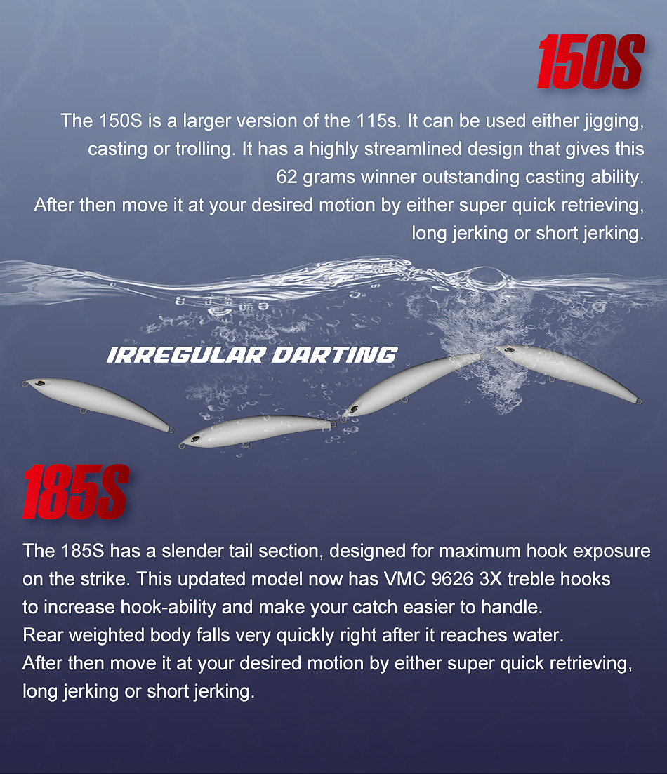 - Hooks: Heavy-duty 4X treble hooks with reinforced split rings