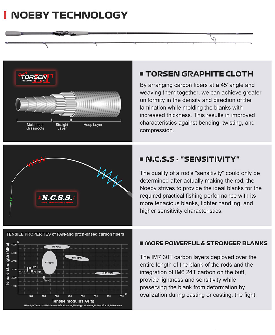 - Material: Torsen Graphite Cloth IM7 30T, Solid Carbon Fiber Tip, X-Wrap Reinforcement