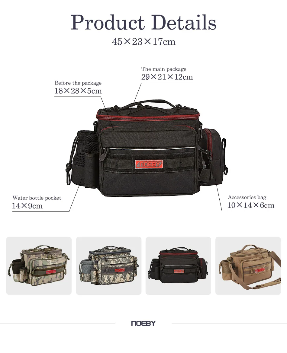 The NOEBY Fishing Tackle Bag is built for durability and convenience, made from tough nylon with a two-layer design to keep your gear secure and organized. With generous dimensions (45 × 23 × 17 cm), it offers ample space for lures, reels, and tackle. Lightweight yet rugged, this multifunctional bag suits all fishing styles—from boat to surf fishing—making it an essential companion for any angler.