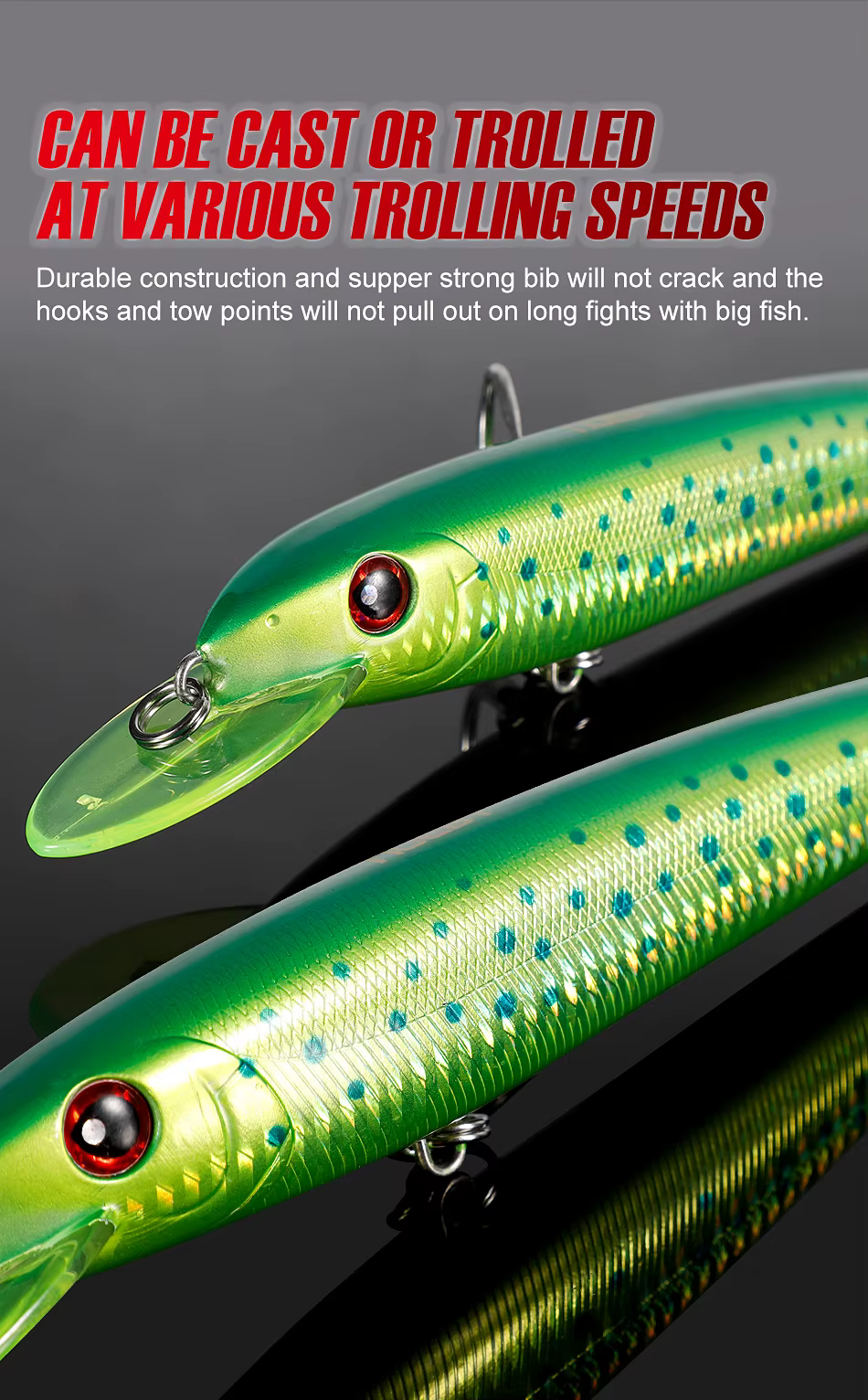 Crafted with a reinforced ABS body, a full through-wire construction, and heavy-duty 4X saltwater trebles, the Lowrider is made to withstand the violent hits of fast-swimming gamefish like Yellowfin Tuna.