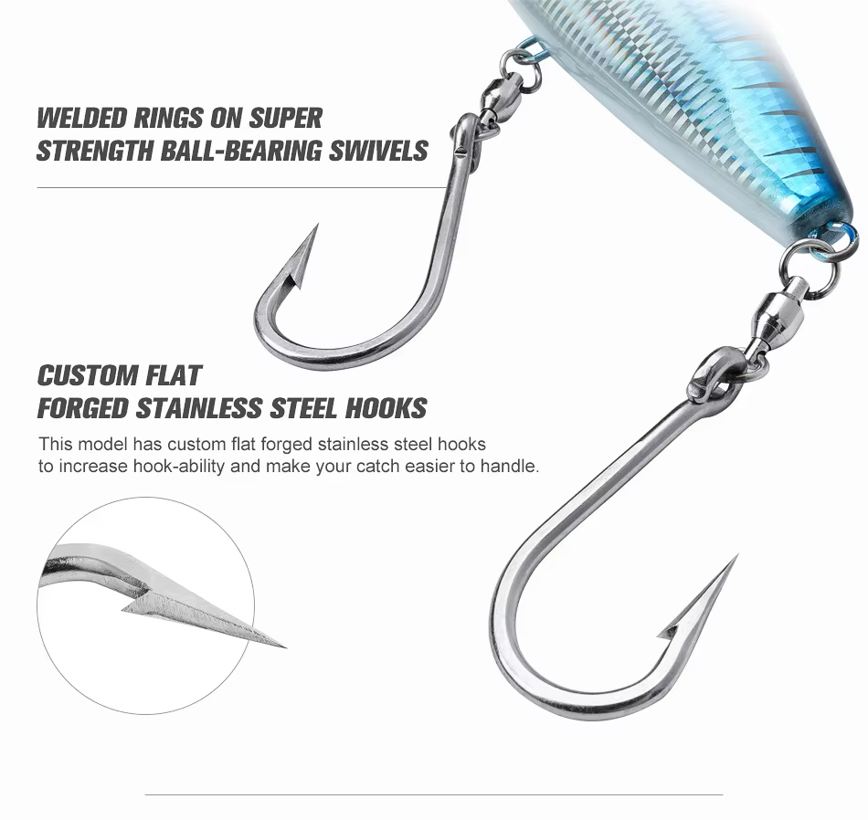 - Hooks: Flat-forged Stainless Steel Hooks