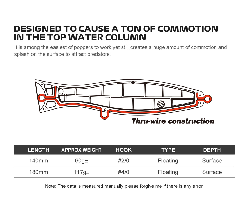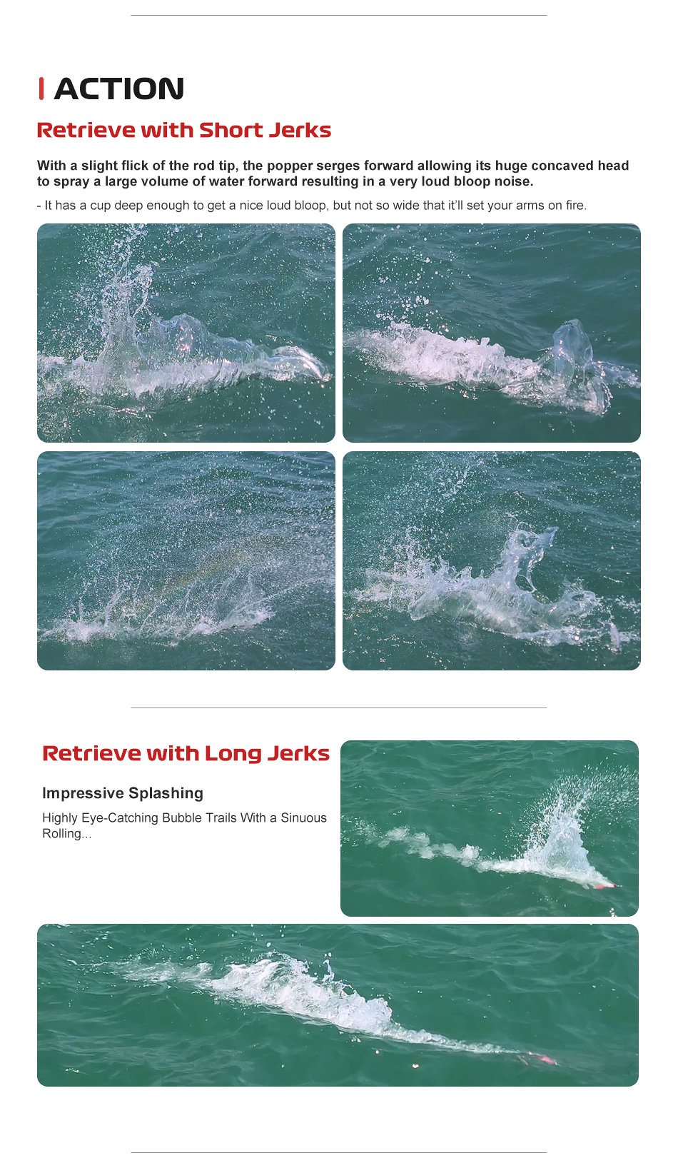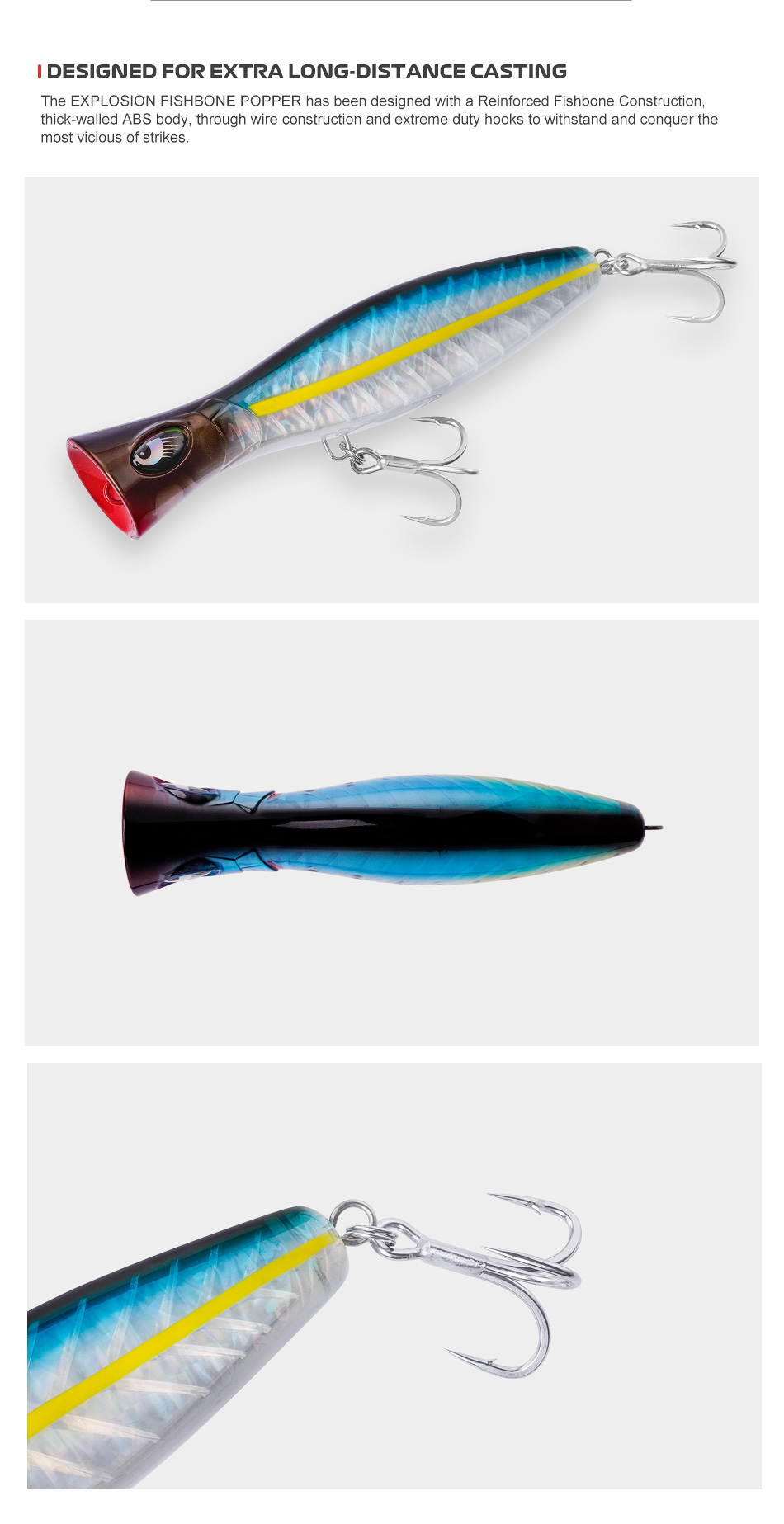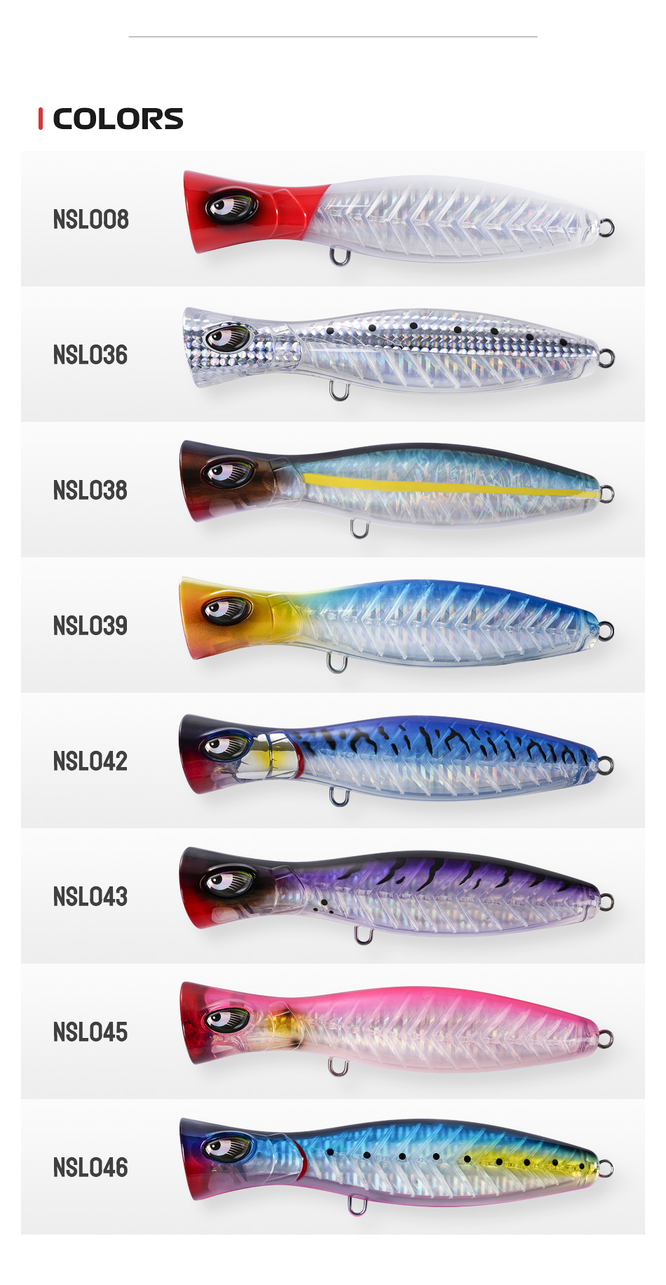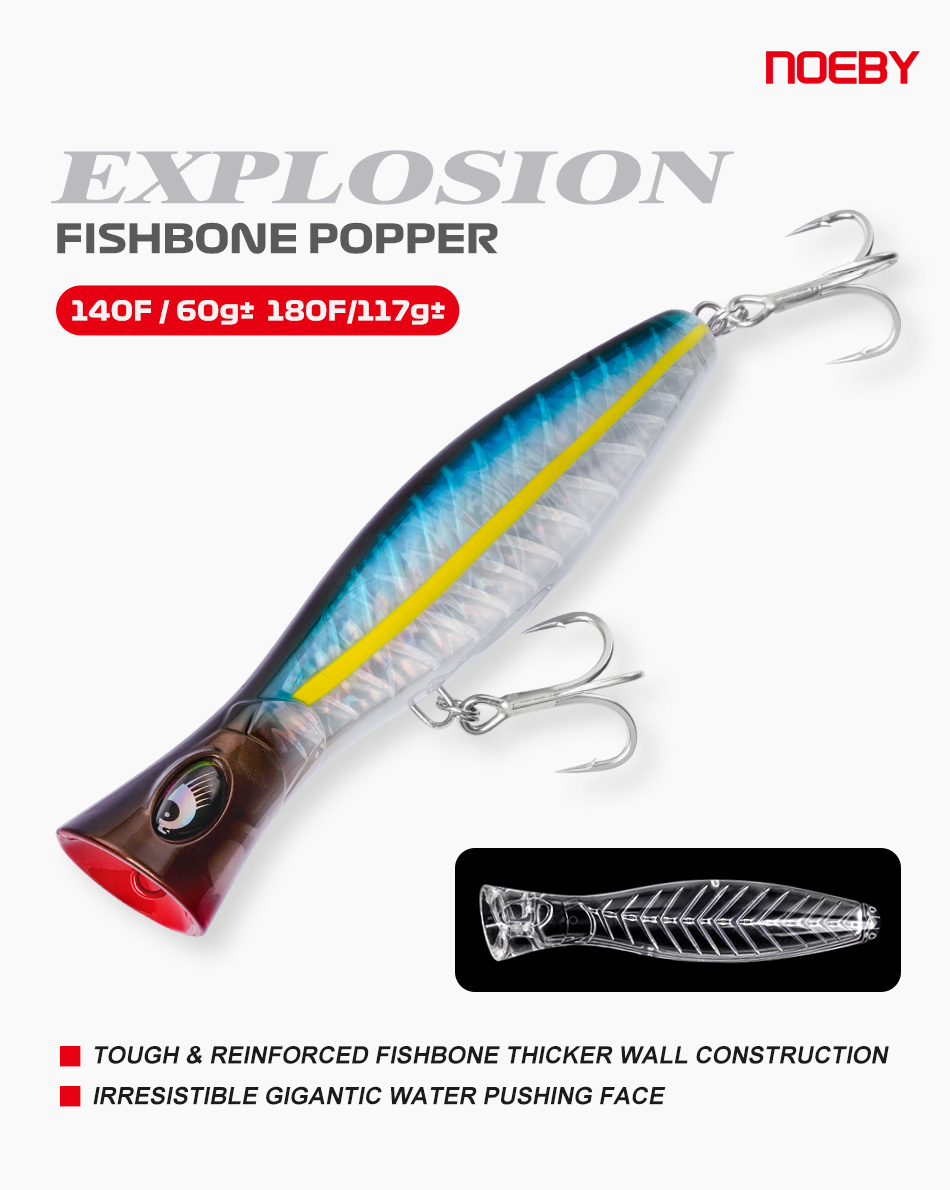 The Noeby Blooper Plus (140F & 180F) is a heavyduty floating popper featuring throughwire reinforcement, giant splash cup action, and 4Xstrength saltwater treble hooks—ideal for targeting GTs, amberjack, kingfish, and surface-feeding predators. With rearweighted balance for tight walking action and long casts, this popper delivers attention-grabbing performance on every strike.