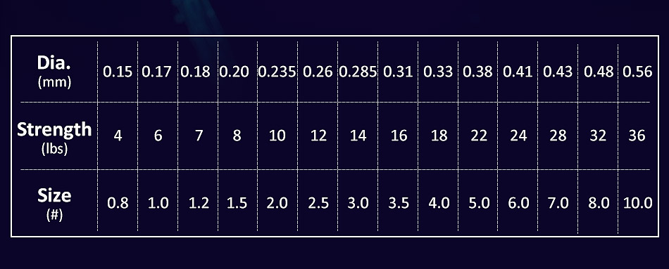- Diameter Options: Typically available from 0.15 mm to 0.48 mm, equating to line tests from ~4 lb to 32 lb breaking strength