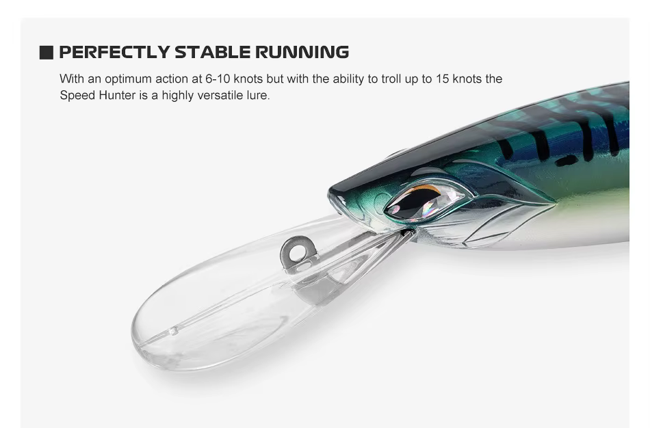 Whether you’re hunting wahoo on the shelf edge or chasing longtail tuna in the fast lane, the Speedhunter stays down, tracks straight, and triggers explosive strikes.