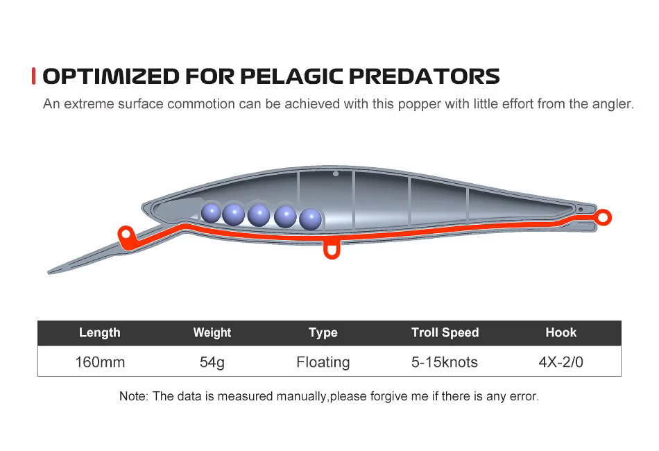 • Trolling Speed: 15 knots (28km/h)