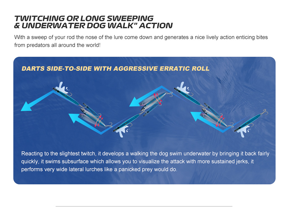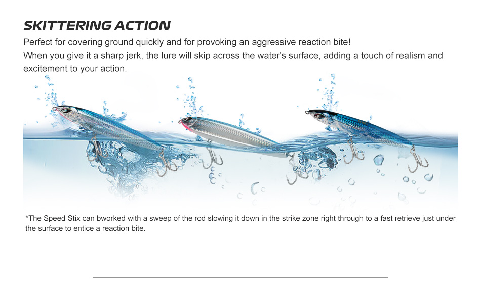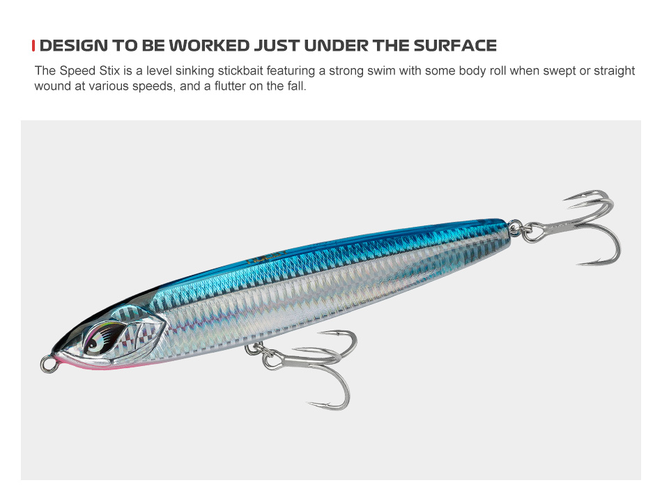 The SpeedStix is a rugged, high-performance sinking stickbait that excels across inshore, offshore, and bluewater environments. Built with balanced internal weight and a slim baitfish silhouette, it’s perfect for long casts and exploring current lines, reefs, or open water. Available in three sizes, the SpeedStix is designed to deliver strong, wobbling action and controlled sinking depths while staying durable under pressure.
