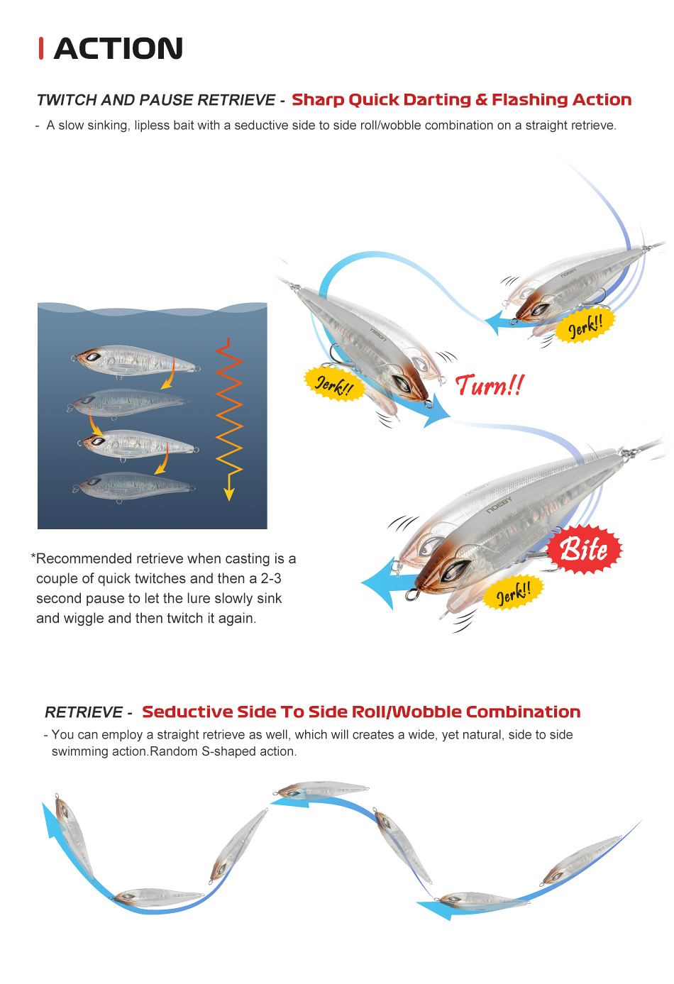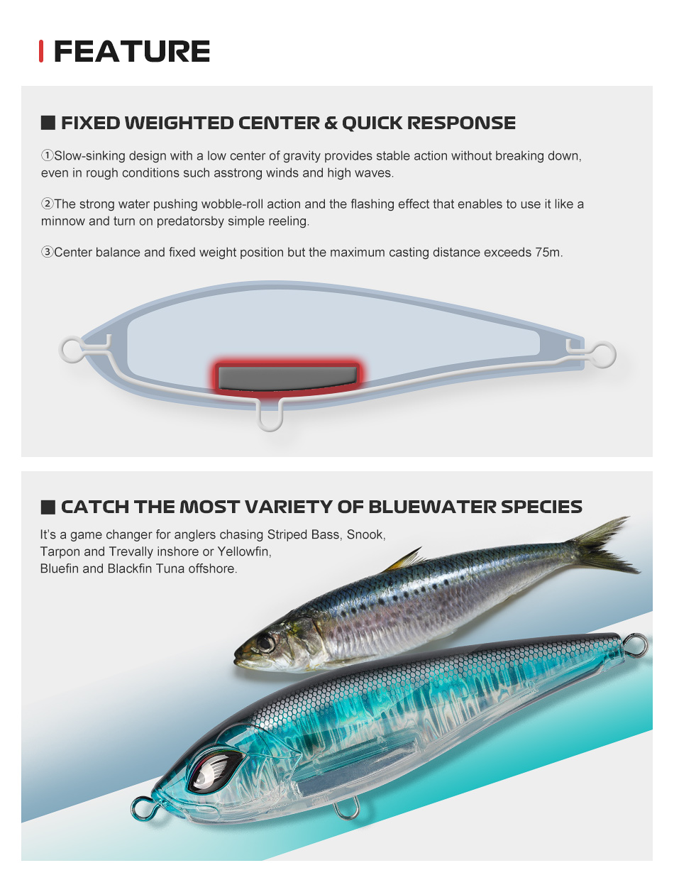 Whether you’re working it off deep ledges for pelagics like kingfish and tuna, or twitching it through troughs and gutters in the surf for kob (mulloway), this lure delivers reliable strikes in high-energy environments.