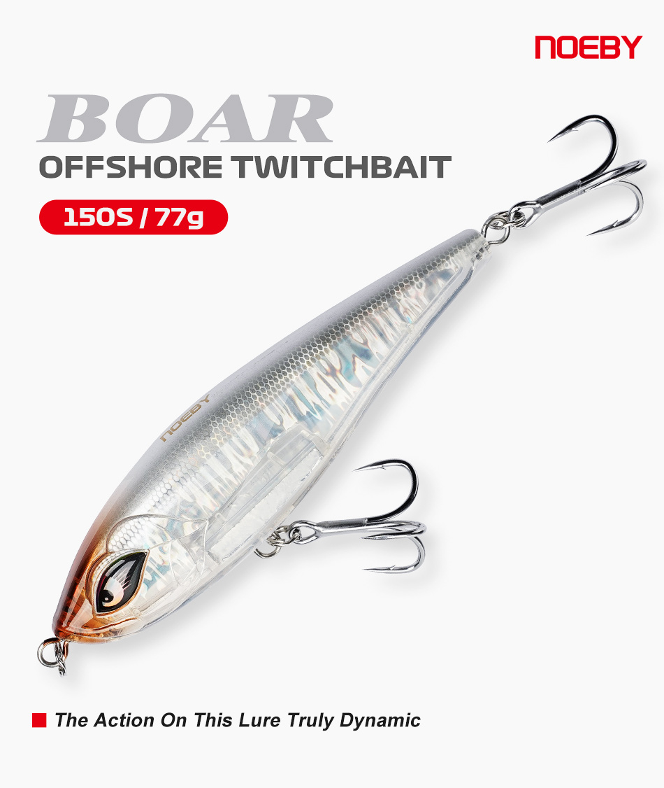 The Boar is a heavy-duty sinking twitchbait designed for both offshore and surf-zone performance. Its aerodynamic 150 mm profile and internal weight transfer system allow for long, accurate casts even into a headwind. The Boar’s sharp, darting action and holographic flash make it irresistible to aggressive predators.