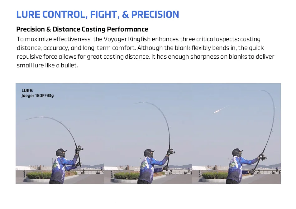 The NOEBY VOYAGER Kingfish Edition Fishing Rod is a high-performance offshore casting rod designed specifically for targeting large Yellowtail. The VOYAGER Kingfish Edition is engineered for ultimate casting distance and exceptional pulling power. Its fast action and heavy power rating provide the necessary backbone to handle the intense runs and headshakes of large fish.