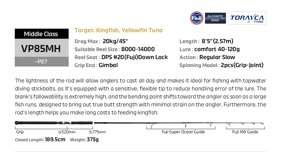 - Lure Weight: 40g – 120g