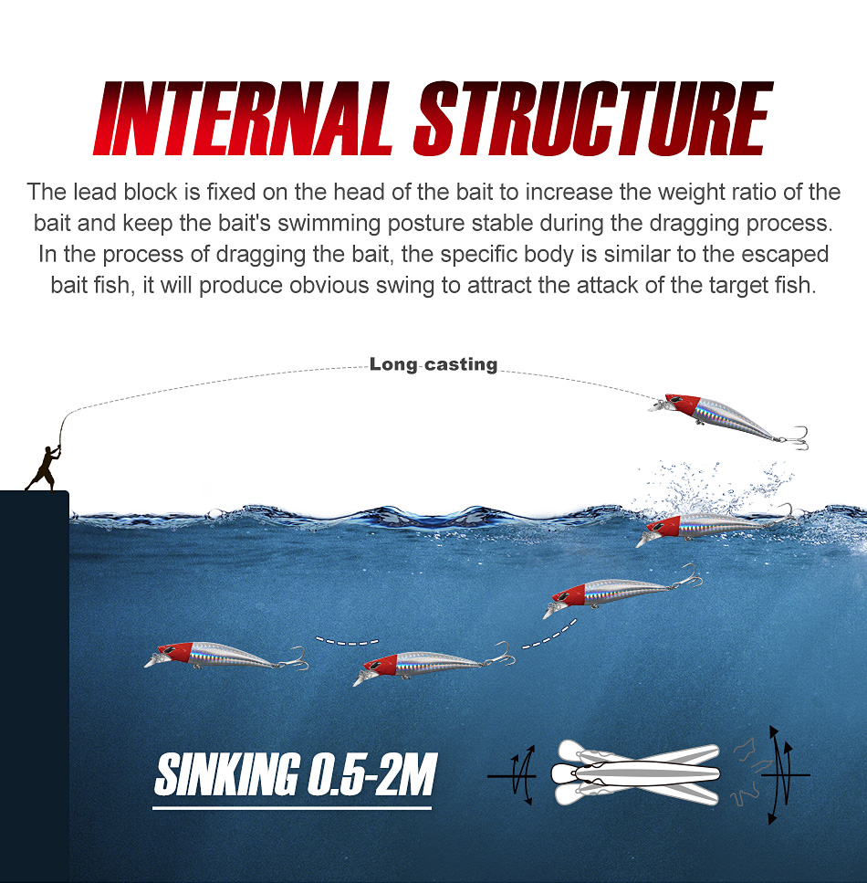The Warrior Minnow for its compact, longcasting, deep-diving performance—is built to precisely reach depths between 0.5 m and 2 m, even in choppy conditions. The unique Ushaped bill design enables rapid plunge and stable tracking, making it ideal for ripping and steady retrieves alike to provoke aggressive strikes from predatory species.