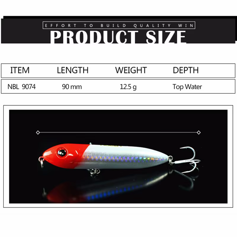 The ZSpook is a compact, precision-crafted walking pencil bait, designed for effortless walk-the-dog retrieves—easy to cast, control, and strike with. Its internal weight system and noise chamber enable perfect balance and attraction on the surface, making it deadly on species like Bass, Grunter, Kob, and other surface-feeders in flats, estuaries, or open water.