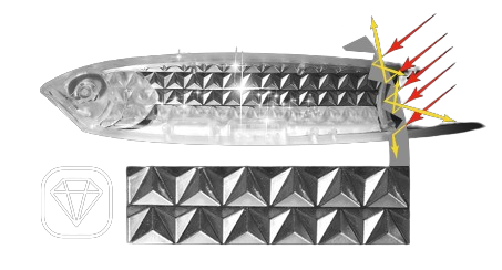 The Polyhedron DIAMOND CUBE was specifically designed to capture the feeling of being inside a crystal. It polyhedron sends out flashes of reflected light and insert the reflection core of the crash pattern which fish can see from a great distance. This must be one incredibly surreal and glittering spectacle to witness in person.